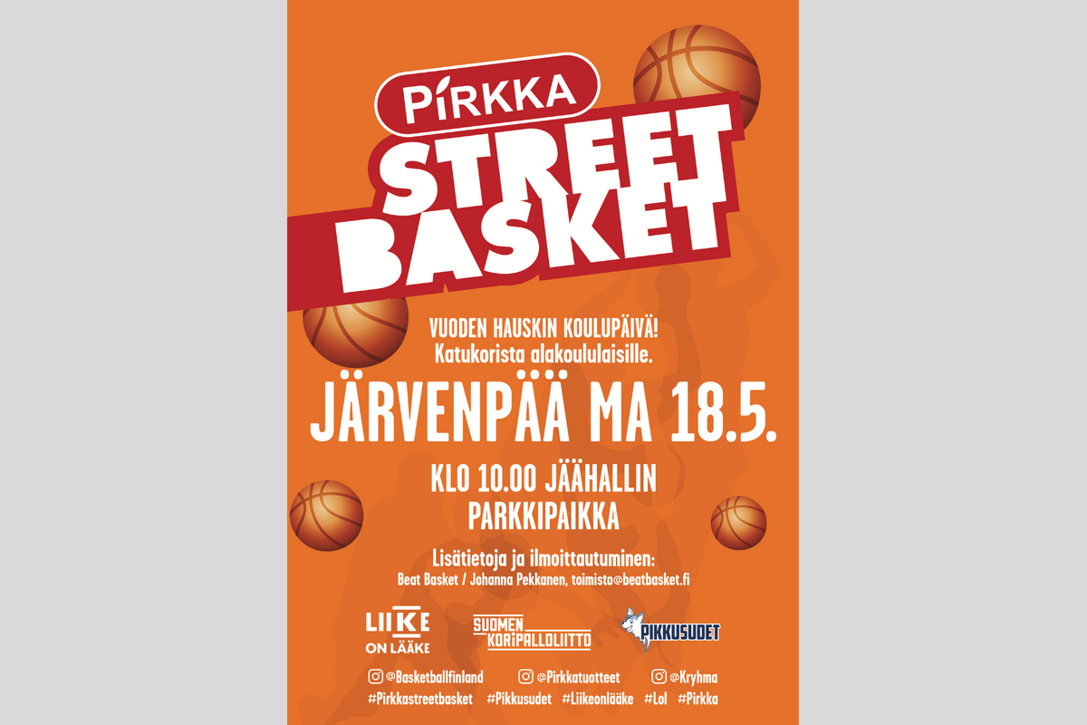Pirkka Street Basket -kiertue tulee taas Järvenpäähän ja alakoululaiset pääsevät viettämään vuoden hauskinta koulupäivää! Ilmoita luokkasi mukaan täällä!